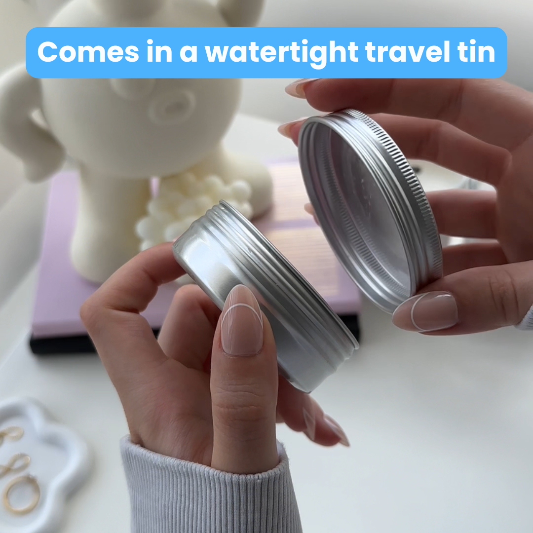 Watertight screw-top tins included for free mean you never have to worry about ruined clothes.